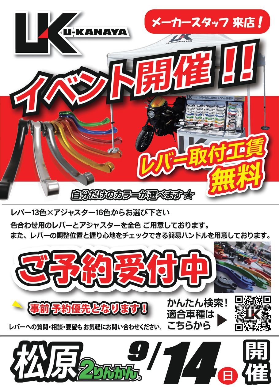 松原2りんかん 【松原2りんかん】U-Kanaya レバー無料取り付けイベント開催
