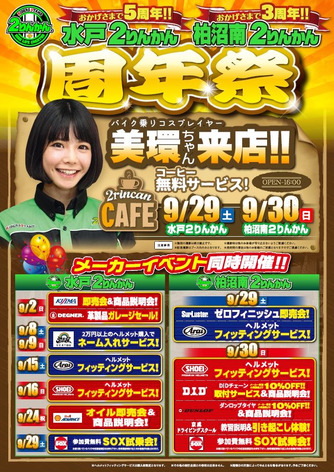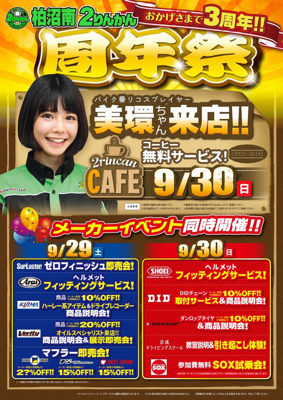9/29は柏沼南2りんかん3周年記念イベント開催