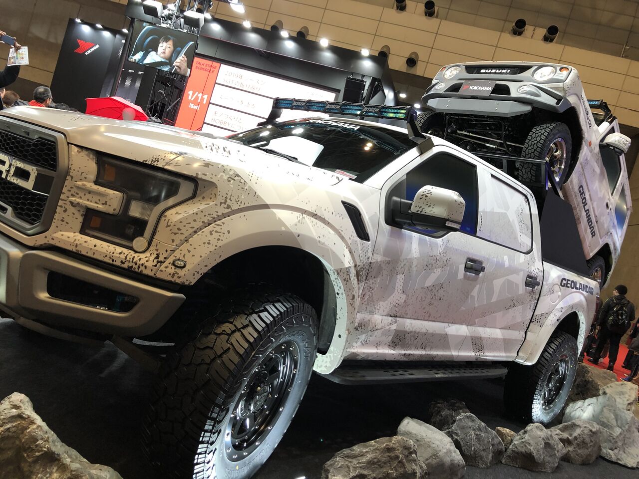 表の駐車場にて、メーカーブースの出店を多数予定しております