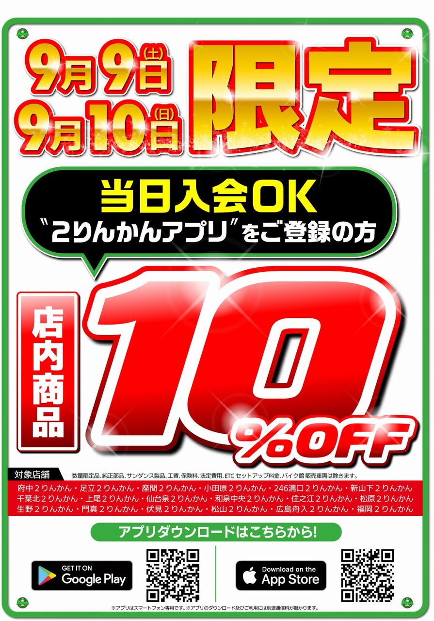 ºÂ´Ö2¤ê¤ó¤«¤ó¤Ç¤Ï9/9(ÅÚ)¡¦9/10(Æü)¤Ë¥¢¥×¥ê²ñ°÷Í͸ÂÄê¤Î¥»¡¼¥ë¤ò¹Ô¤¤¤Þ¤¹