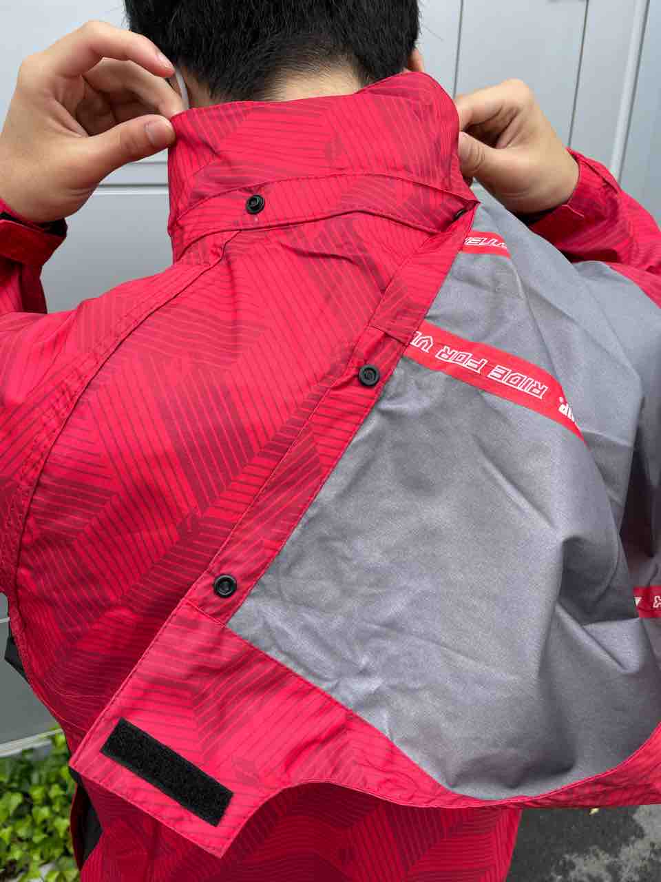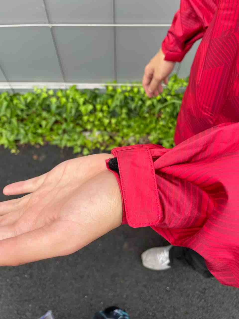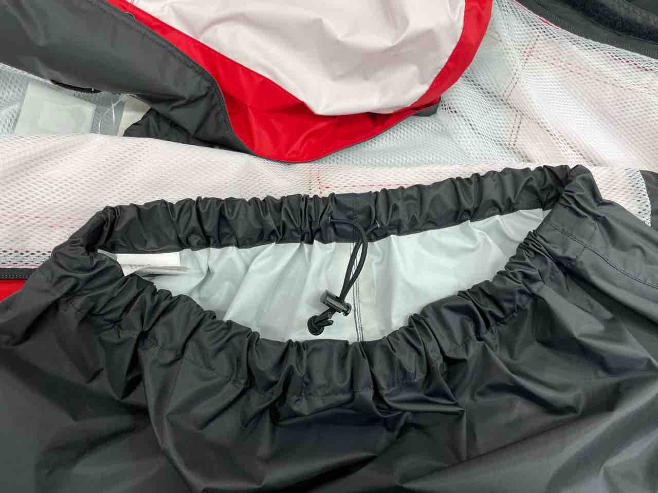 手首とすそにゴム引きがついているので雨か入り込む心配もありません