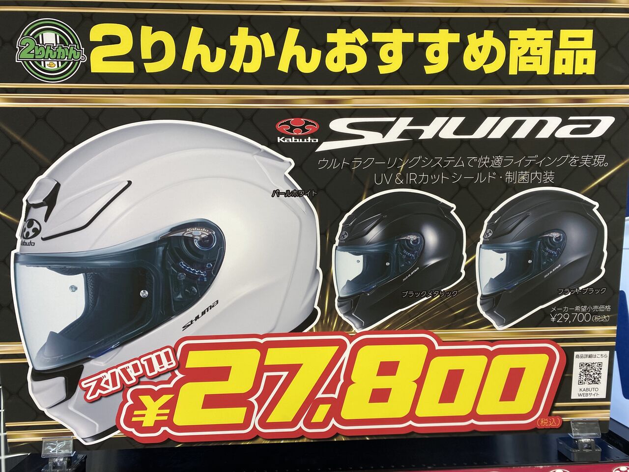 こんにちは、仙台南2りんかんヘルメットコーナーです