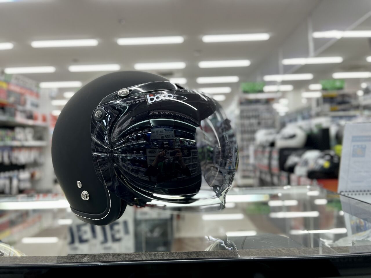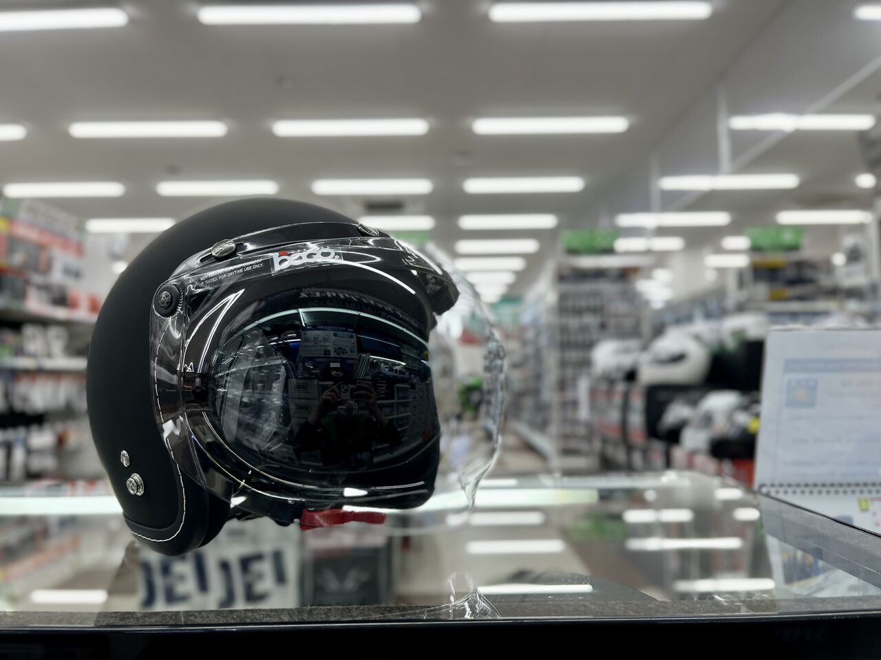 様々なジェットヘルメットにつけることが出来ます