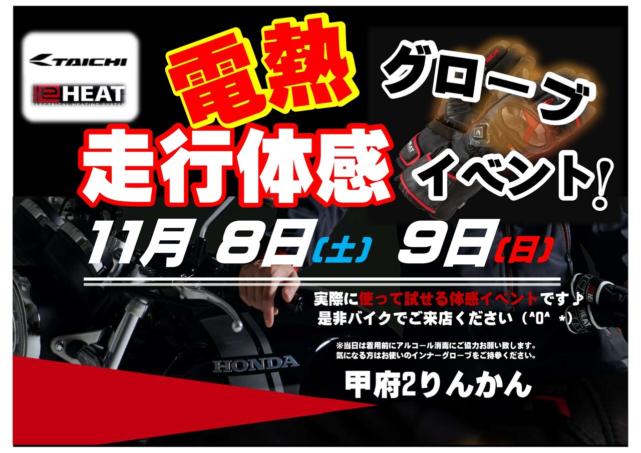 甲府2りんかん 【甲府2りんかん】アールエスタイチ電熱グローブ走行体感イベント!