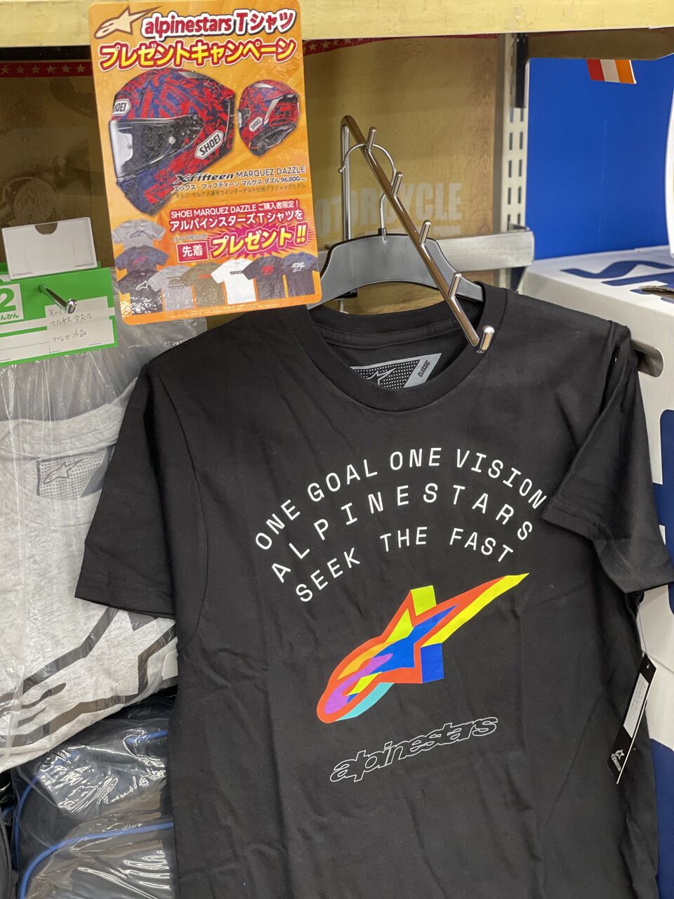 そうです、マルケスダズルを購入していただいたお客様限定でアルパインスターズのTシャツプレゼントしちゃいます