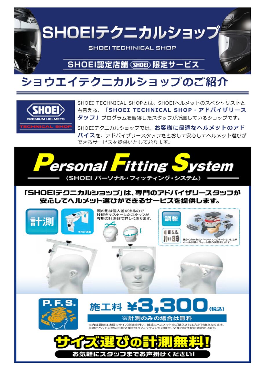 SHOEIテクニカルショップでは、