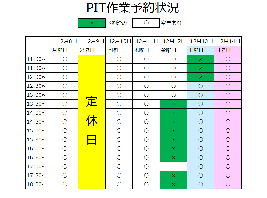 ○PIT作業WEB予約○