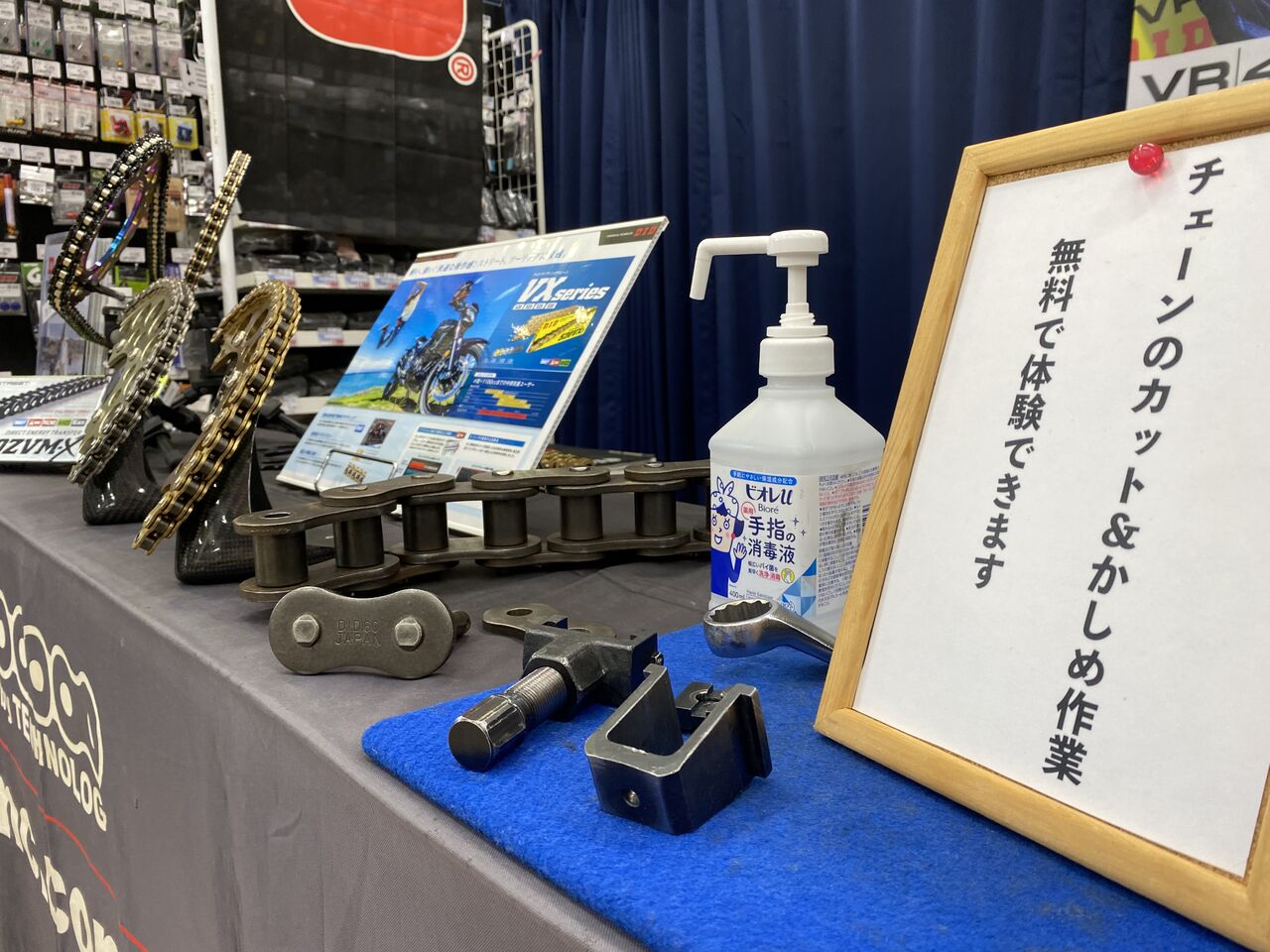 また、チェーン専用工具「かしまる君」の無料体験イベントも開催