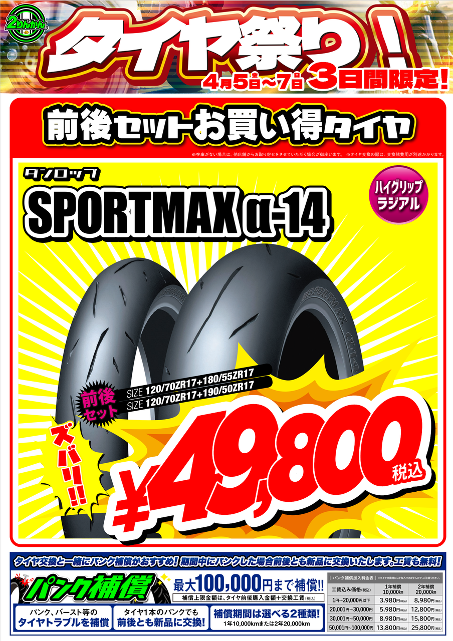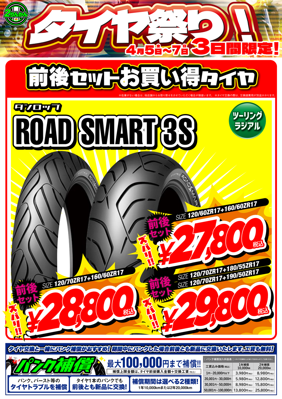 120/70ZR17+180/55ZR17¤Î¥»¥Ã¥È¤¬3¥»¥Ã¥È