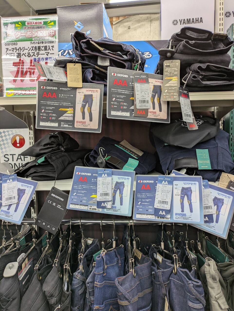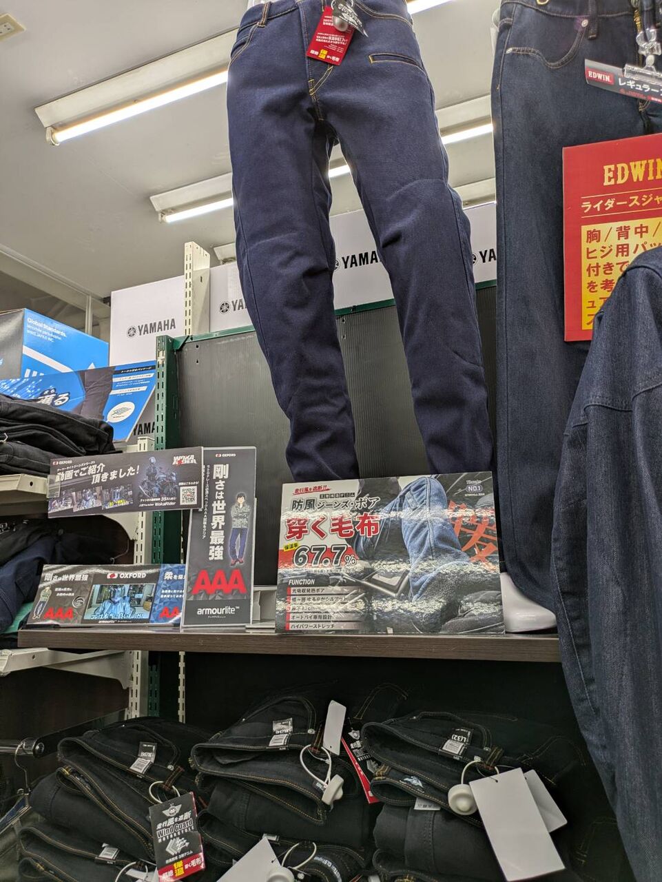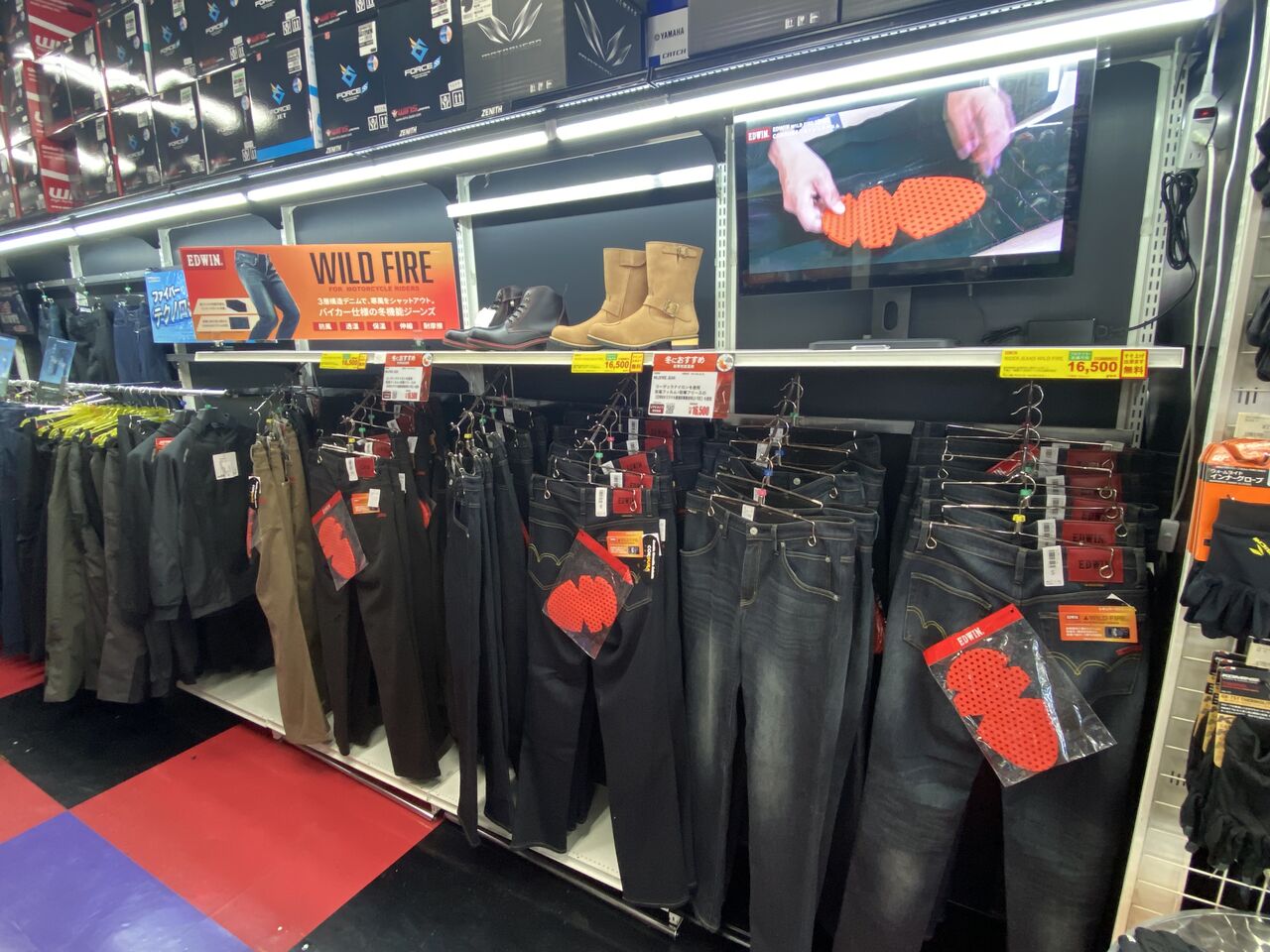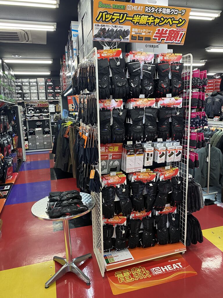 また、通勤通学時の寒さ対策や、長距離ツーリングの時などに、寒さを回避するためのオーバーパンツのコーナーも出来ています