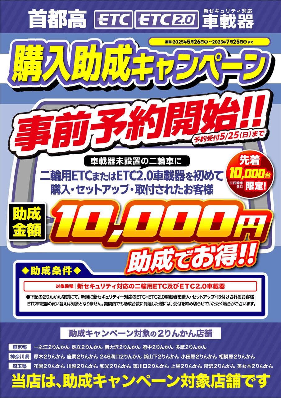 所沢2りんかん 【所沢2りんかん】首都高ETC/ETC2.0 車載器購入助成キャンペーン2025事前予約開始!!