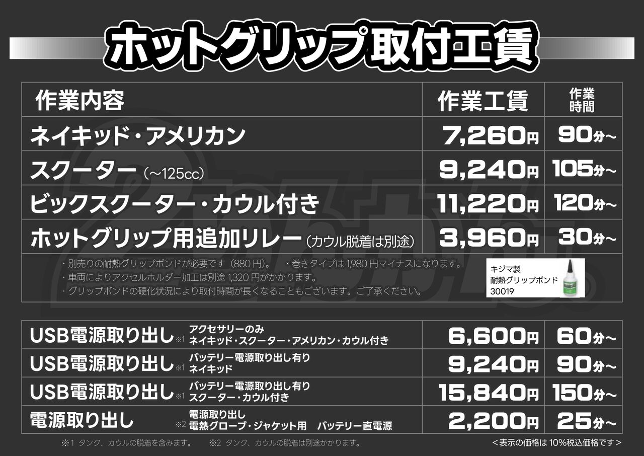 ちなみに各種ホットグリップの取付工賃は