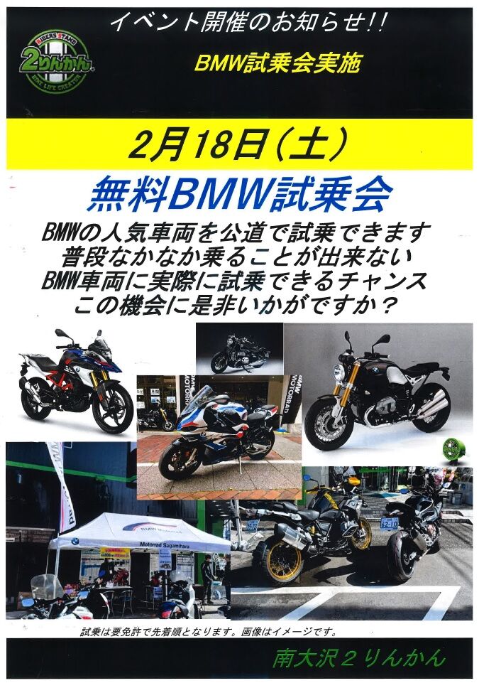 南大沢2りんかん 2/18(土)本日BMW試乗会実施!公道走行OK!