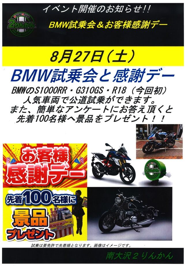 気軽にBMWバイクを体験するチャンスです。