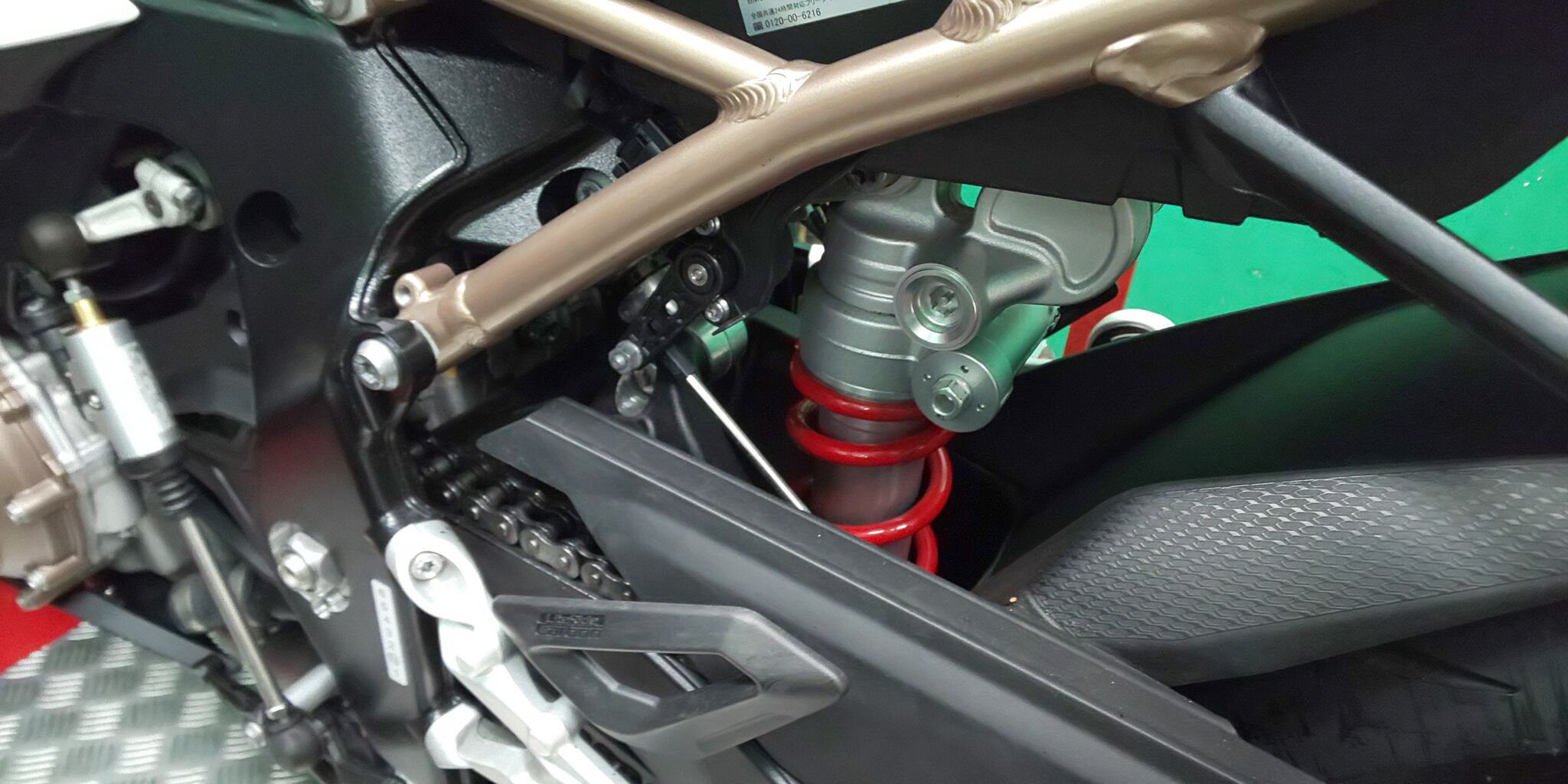 シフト側は、ノーマルと同じくシフトロッドがフレーム内を通り、プレミアムラインのクイックシフターセンサーもそのまま取り付けできます