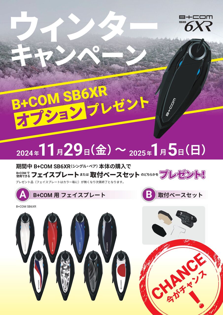 B+COM SB6XR,ONEをご購入のお客様にプレゼントいたします