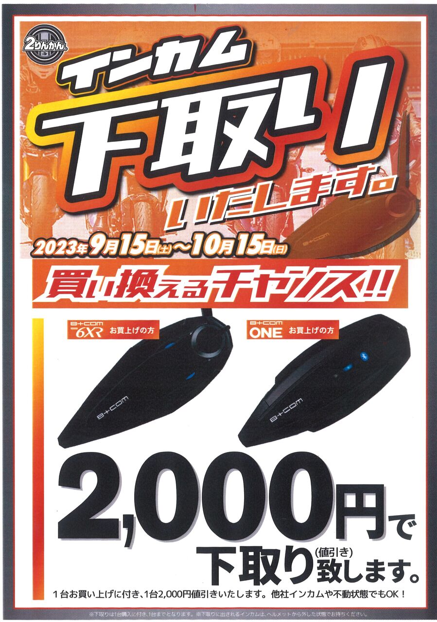 お持ちのインカム(機種問わず)を2,000円で下取りするキャンペーンを実施中です