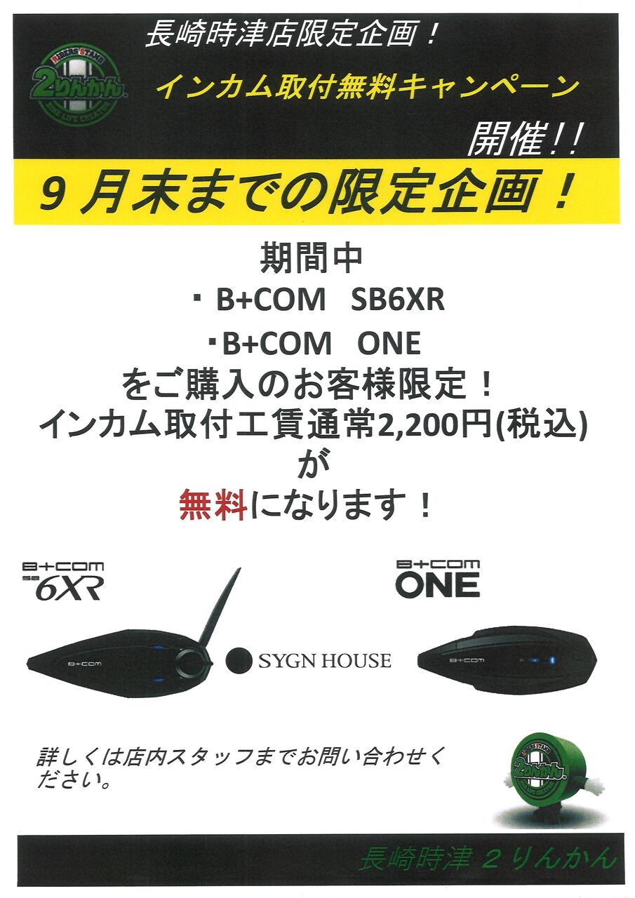 長崎時津2りんかん インカム取付無料キャンペーン開催中!