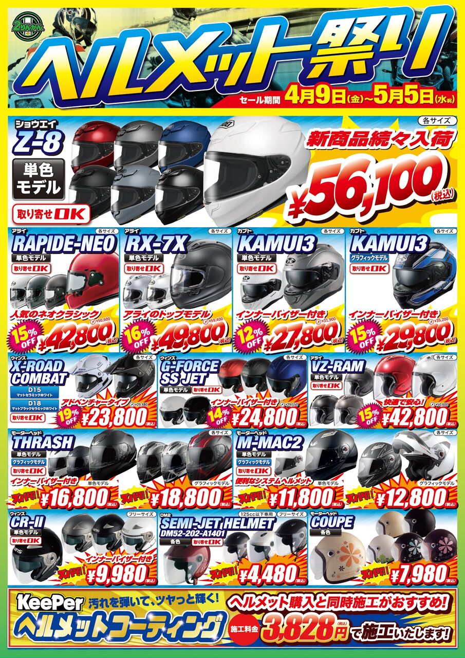 また、ヘルメット選びのお手伝いもさせて頂けますので