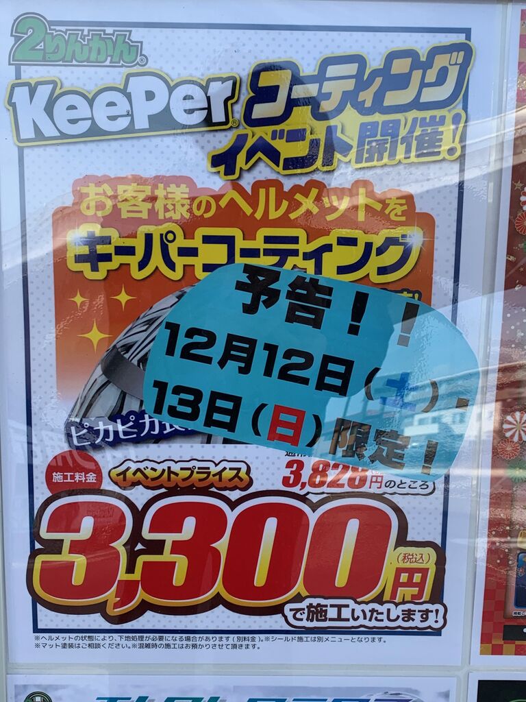 本日、明日の2日間はヘルメットKeeperコーティングがお得