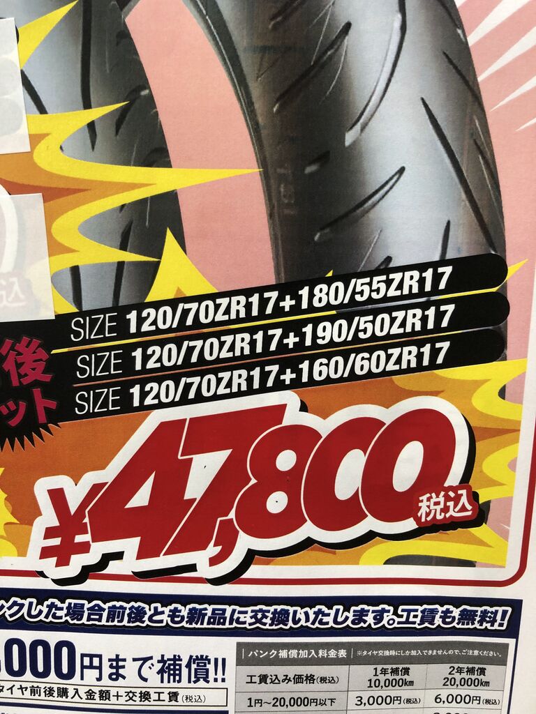 前後セットで税込み 47800円です(タイヤ交換費用は別途)