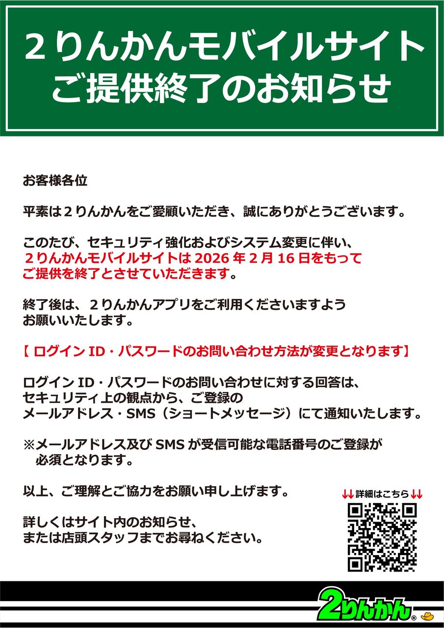 ½êÂô£²¤ê¤ó¤«¤ó¡¡¡Ú½êÂô2¤ê¤ó¤«¤ó¡ÛɬÆÉ¡ª2¤ê¤ó¤«¤ó¥â¥Ð¥¤¥ë¥µ¥¤¥È¤´Äó¶¡½ªÎ»¡õ¥¢¥×¥ê¥Ð¡¼¥¸¥ç¥ó¥¢¥Ã¥×¤Î¤´°ÆÆâ¡ª