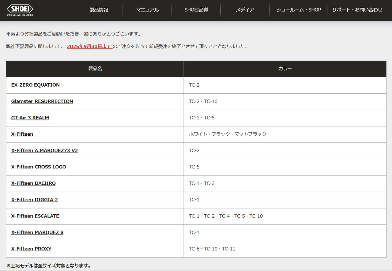 X-Fifteen、廃盤になるみたいです。しかも9月末。