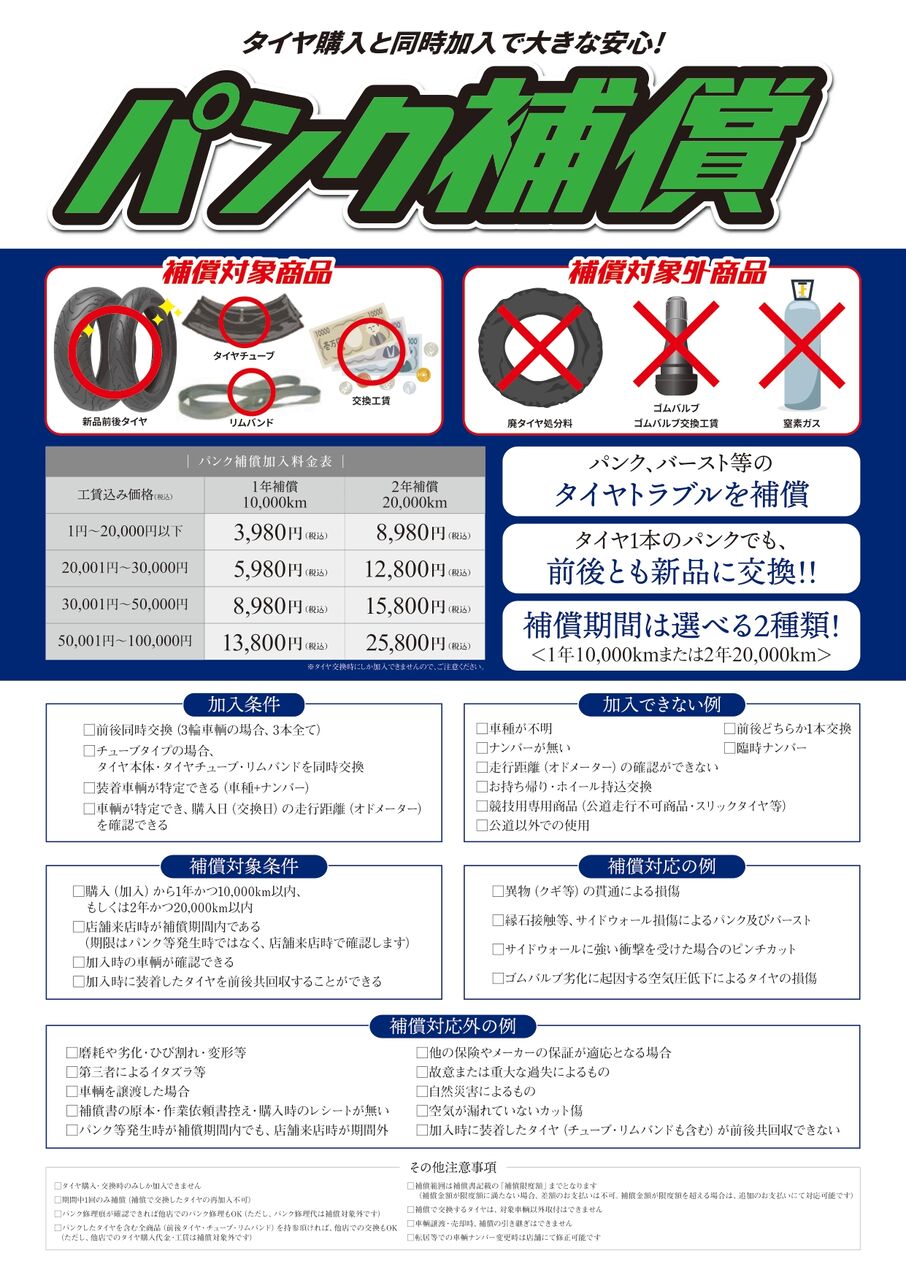 業界初!タイヤパンク補償取扱中