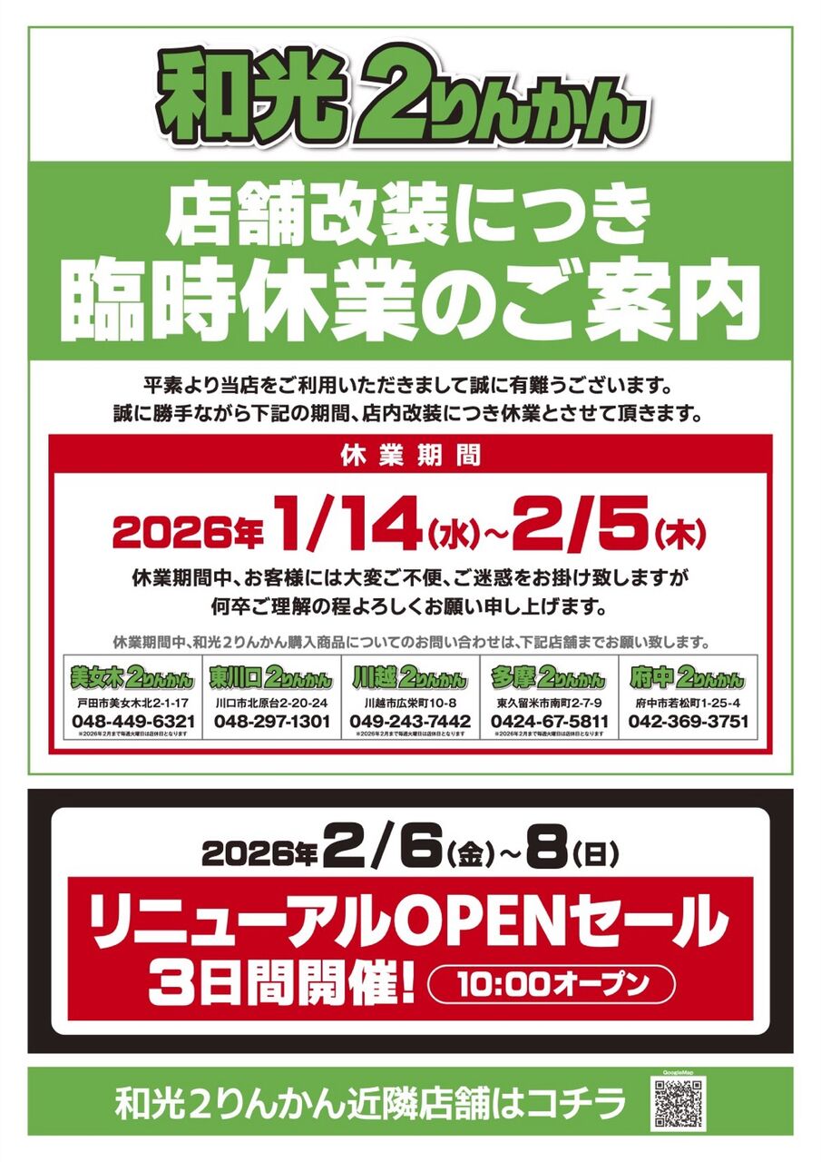 和光2りんかん 【和光2りんかん】店舗改装のお知らせ