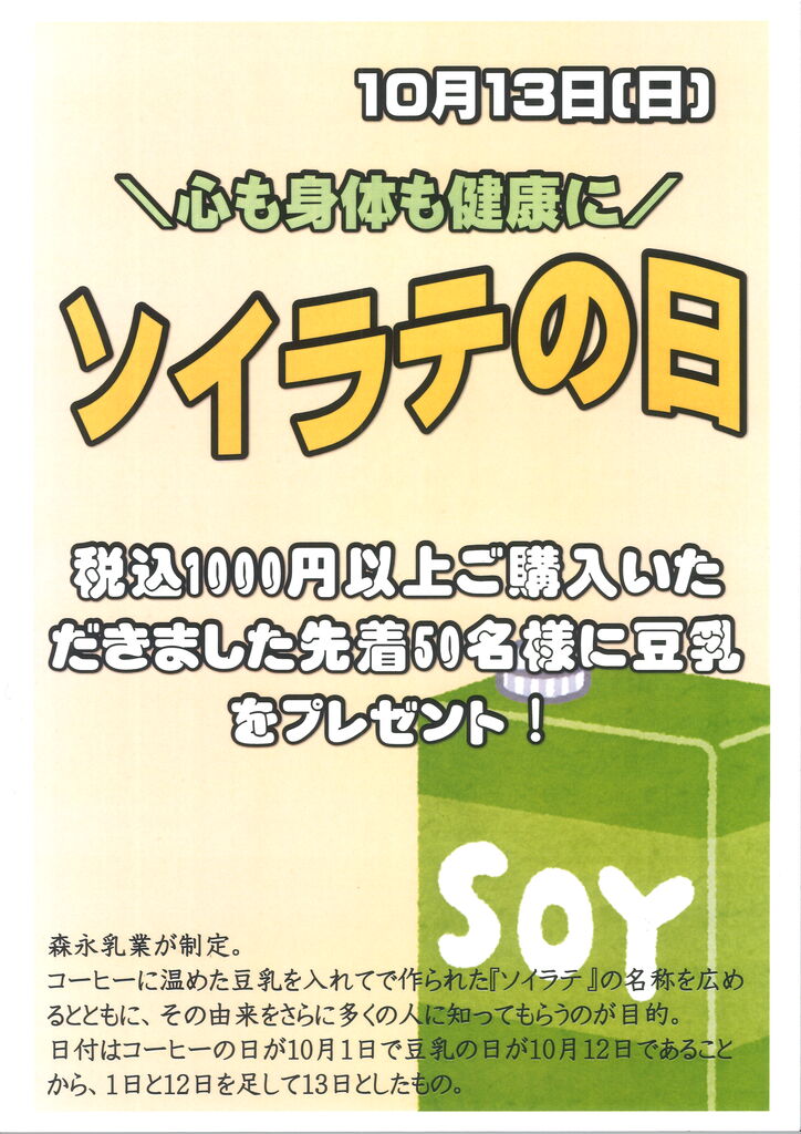 ¤µ¤Æ¡¢£±£°·î£±£³Æü¤Ï¥½¥¤¥é¥Æ¤ÎÆü¤Ç¤¹