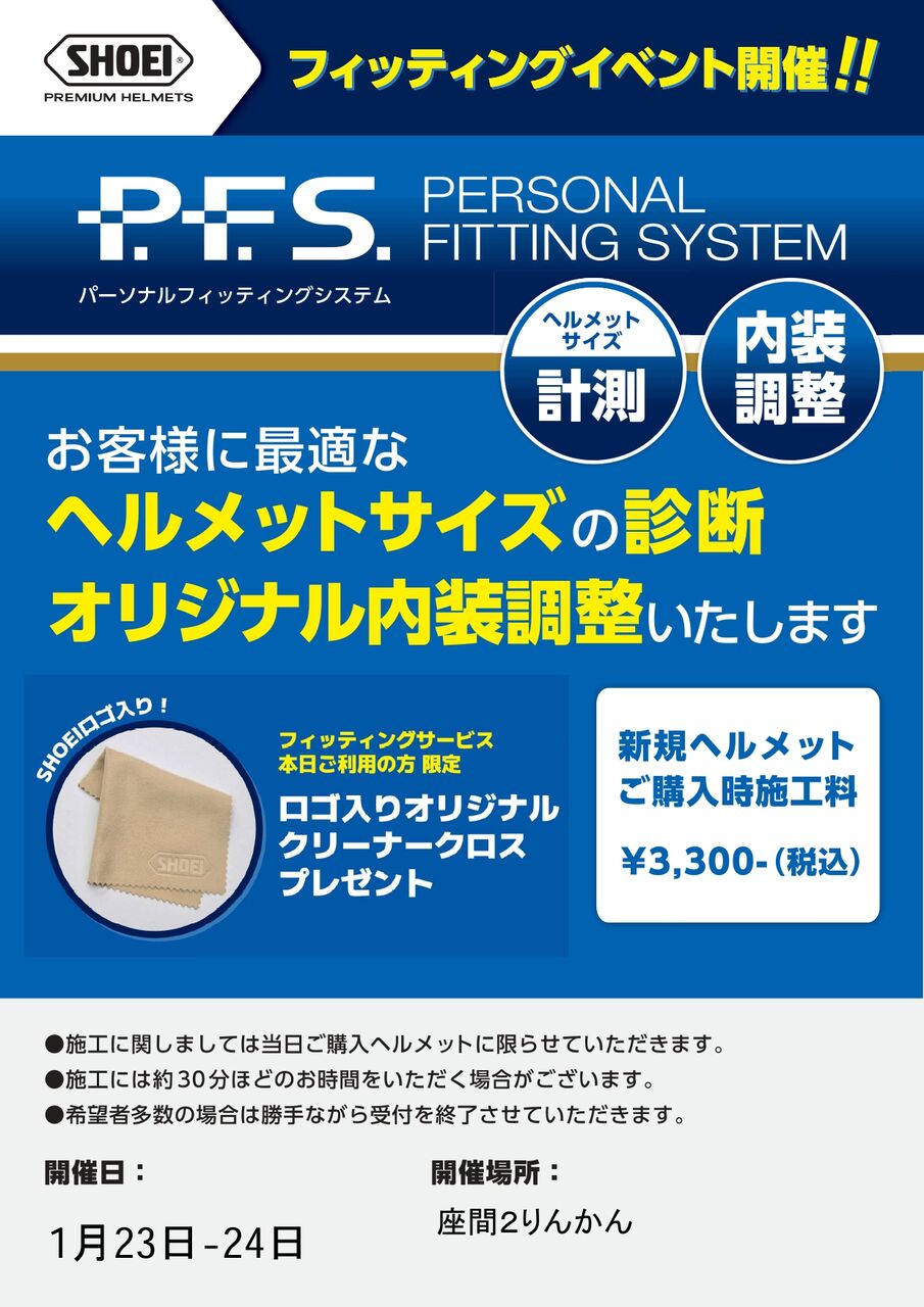 1/23、1/24はArai、SHOEI、OGKの代理店スタッフによるヘルメットフィッテイング