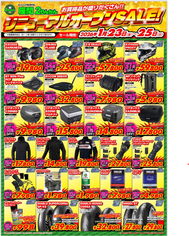 1/23〜1/25でリニューアルOPENセールを開催いたします !!!!